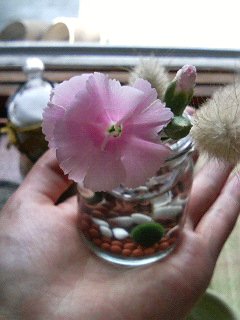 一輪のお花で水をすくってお口にわたしてあげました